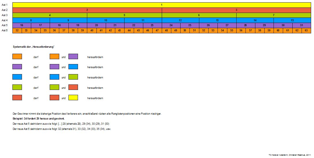Die folgende Übersicht verdeutlicht die Systematik, wie im Verein der Ranglistenplatz verbessert werden kann.